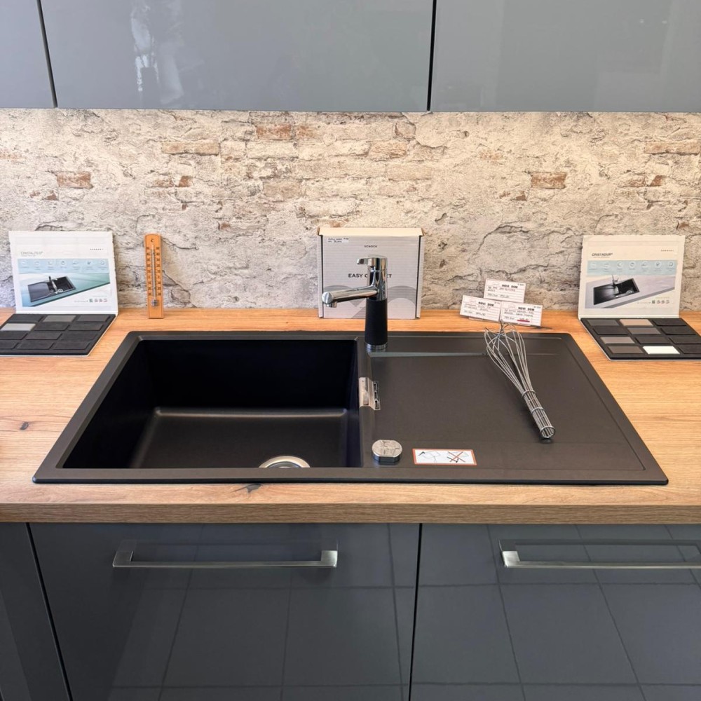 Kuhinjska armatura SCHOCK SC-510 je klasična brezčasna armatura, ki je delno kromirana, delno pa jo sestavlja naravni kamen. V tej temni barvi Stone se ji zelo lepo poda pomivalno korito SCHOCK Greenwich v isti barvi.