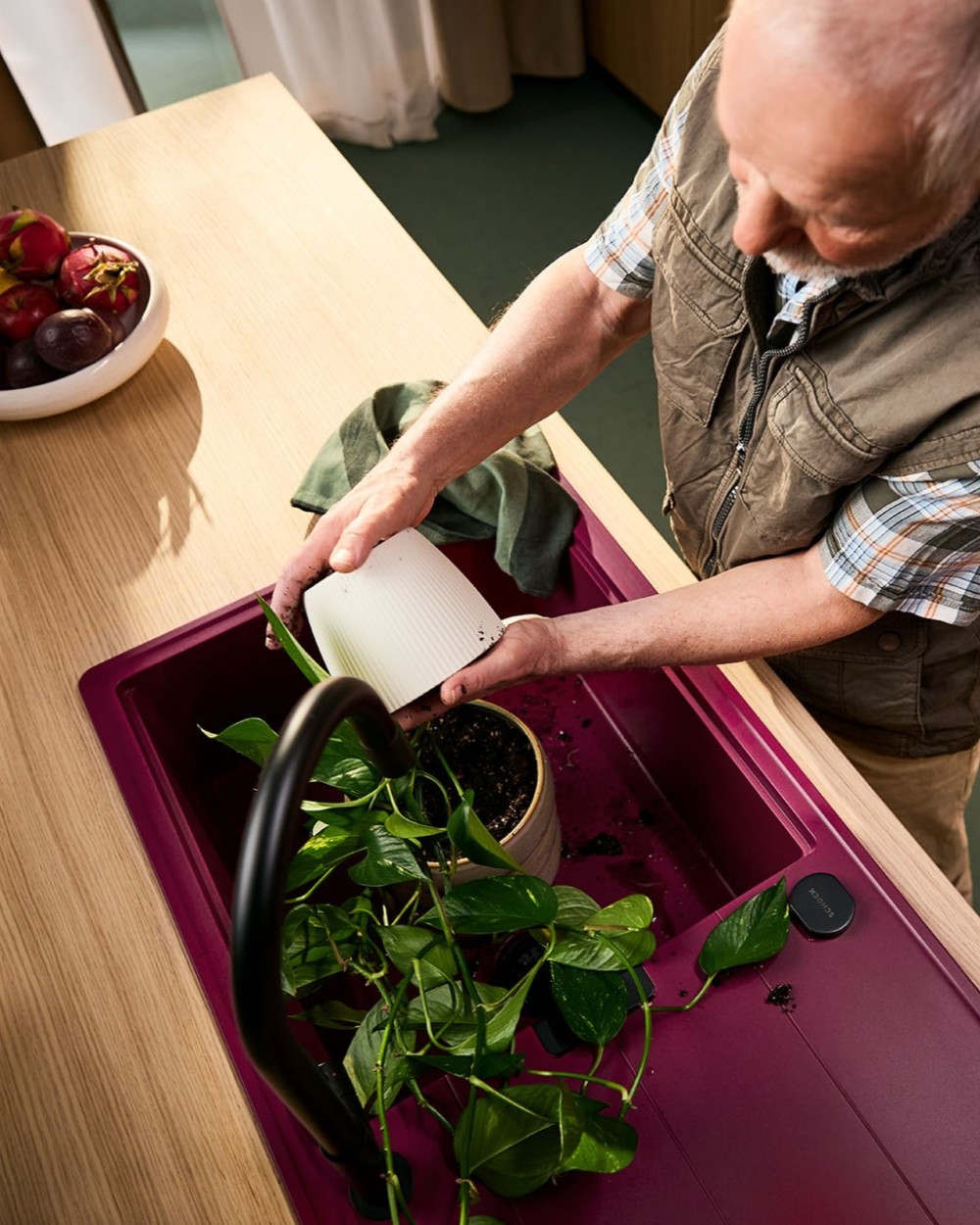 Armatura ima prav tako izvlečno ročko s kroglično glavo za maksimalno fleksibilnost ter možnost navadnega curka vode ali tuša za večjo učinkovitost čiščenja posode. Armaturi se lepo podajo vsa podvgradna korita kot so Schock Greenwich ali Kiruna. Na voljo je v tej črni barvi Black, v ponudbi pa je tudi v barvi plemenitega jekla.