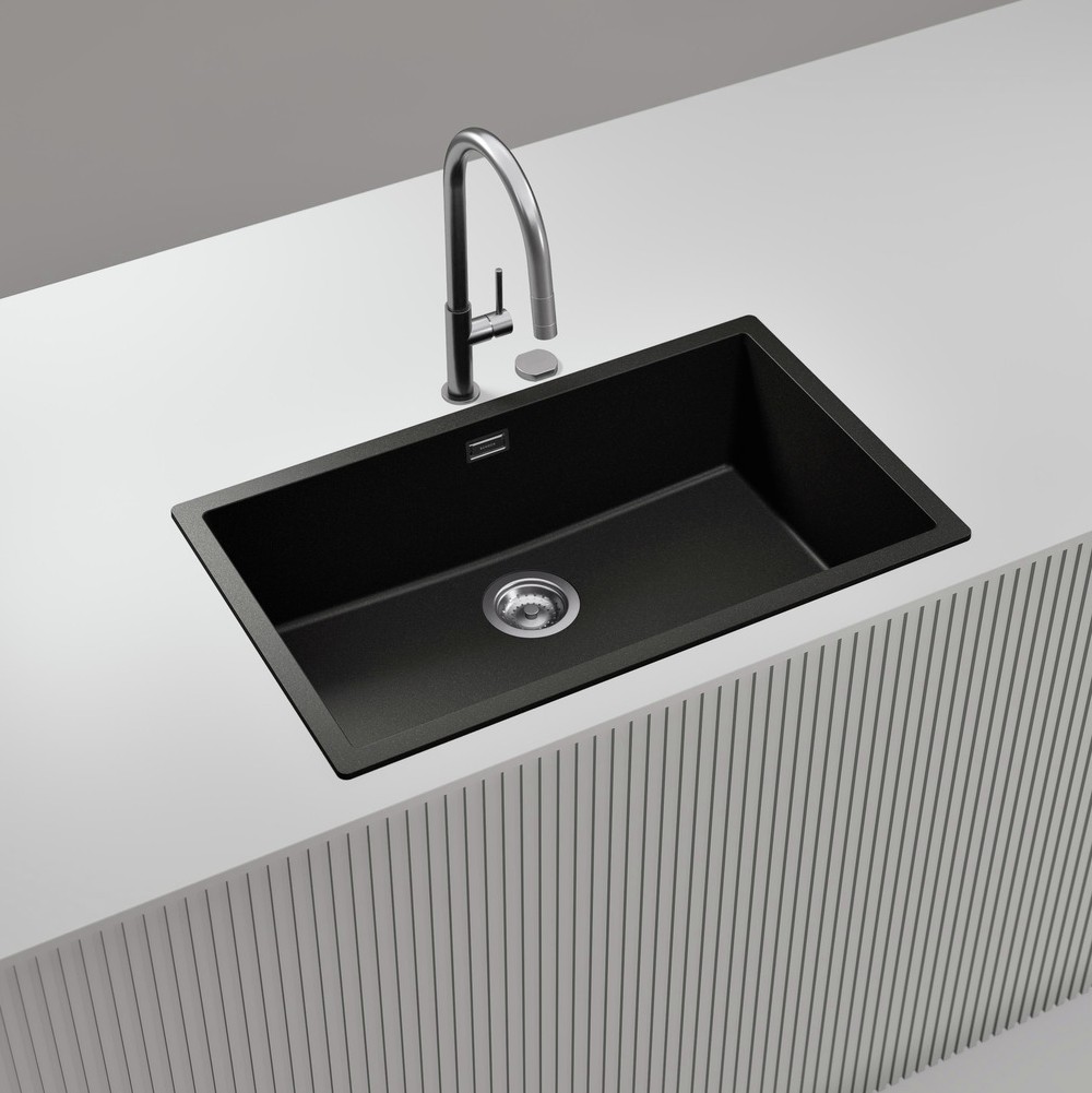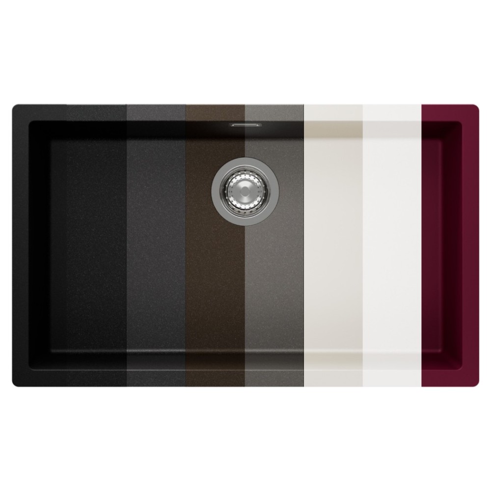 Korito se bo v tej temni barvi Stone lepo umestilo v vsako kuhinjo. Lahko mu dodate še druge dodatke kot so LED luči, izlivno prelivna garnitura v različnih barvnih obdelavah, dva različna silikonska odcejalnika, dvojni dizajnerski odcejalnik iz plemenitega jekla v večih barvah, fleksibilno cedilo, gumb za avtomatsko odpiranje in zapiranje izliva, praktično kotno posodico ter več dozirnikov za milo.