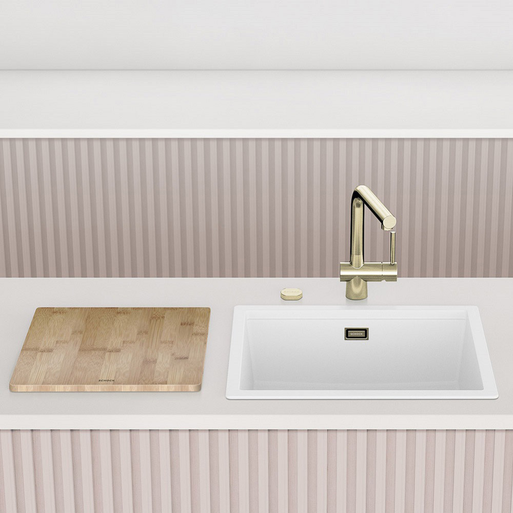 Pomivalno korito SCHOCK Kiruna N-100 je eno izmed novejših Schockovih korit. Gre za eno izmed najmanjših Schockovih korit brez odcejalnika, zato je primerno za manjše kuhinje. Glavni atribut korita so privlačne in brezčasne barve linije Cristadur® Green Line. Korito lahko opremite z različnimi dodatki, elegantno pa ga dopolni kuhinjska armatura SCHOCK Kavus, ki jo lahko dobite v mnogih barvah.